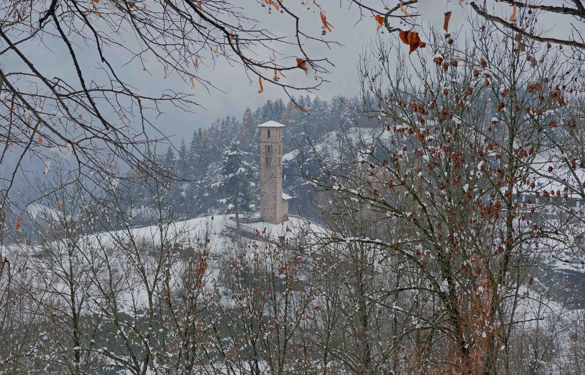 The road is at first surfaced and then unsurfaced as it traces the route of the old Val di Fiemme rail line. Enter the rail tunnel (under the Parco della Pieve) and then continue through the meadows up to the Hotel Panorama.