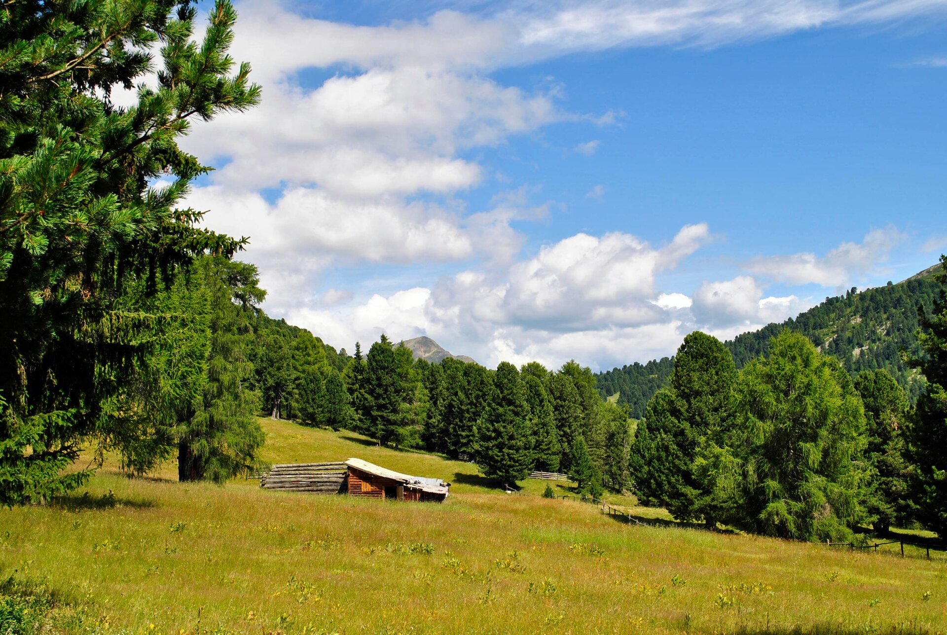 From Passo Oclini, about 14km from Cavalese, this easy walk on a dirt road reaches Malga Gurndin with it's huge meadow. Furthermore you will find Isi Hütte, where you can taste the most delicious dishes of he South-Tyrolean tradition.