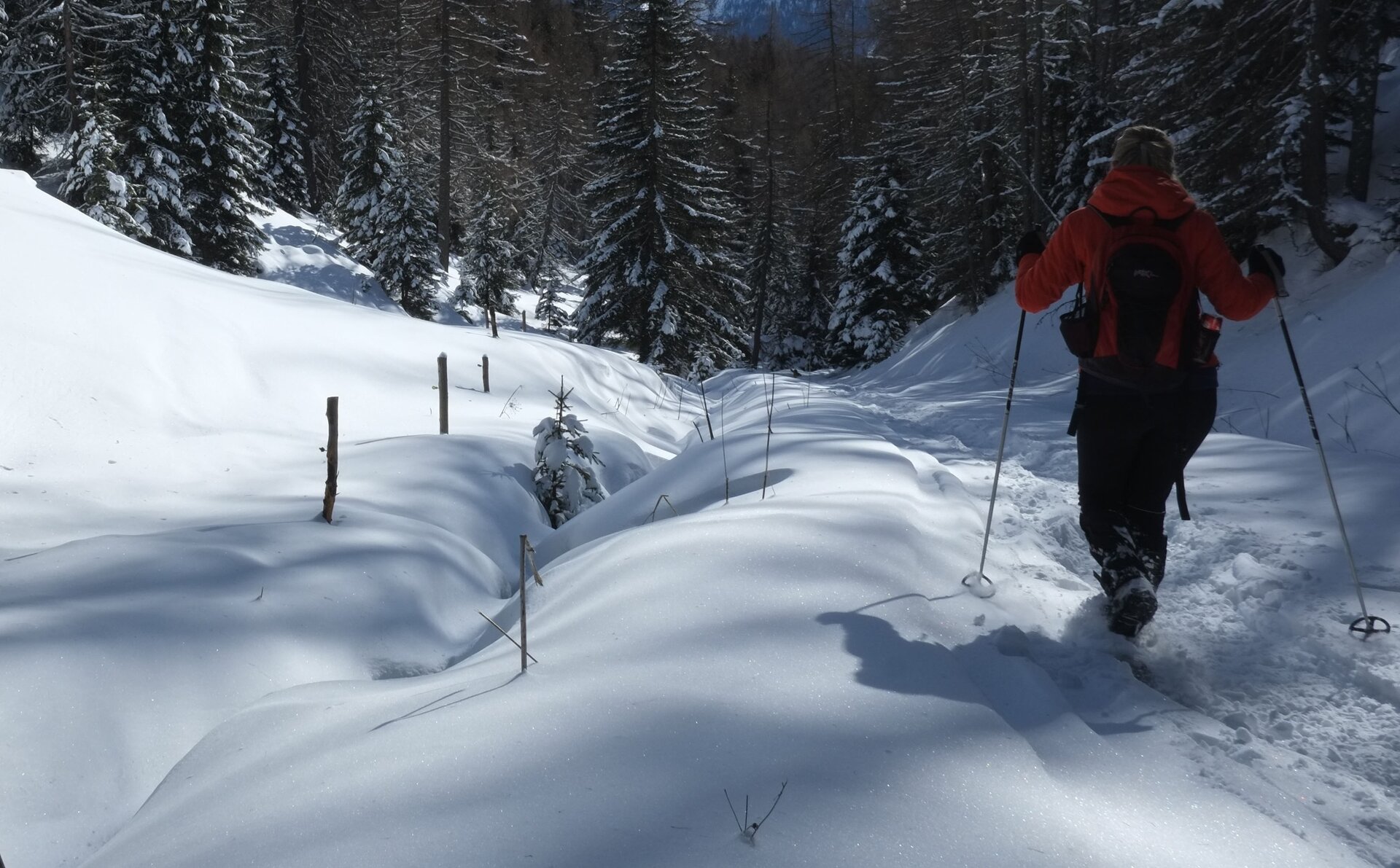Almost the entire walk follows a well-marked forest road and there is no danger of avalanche.