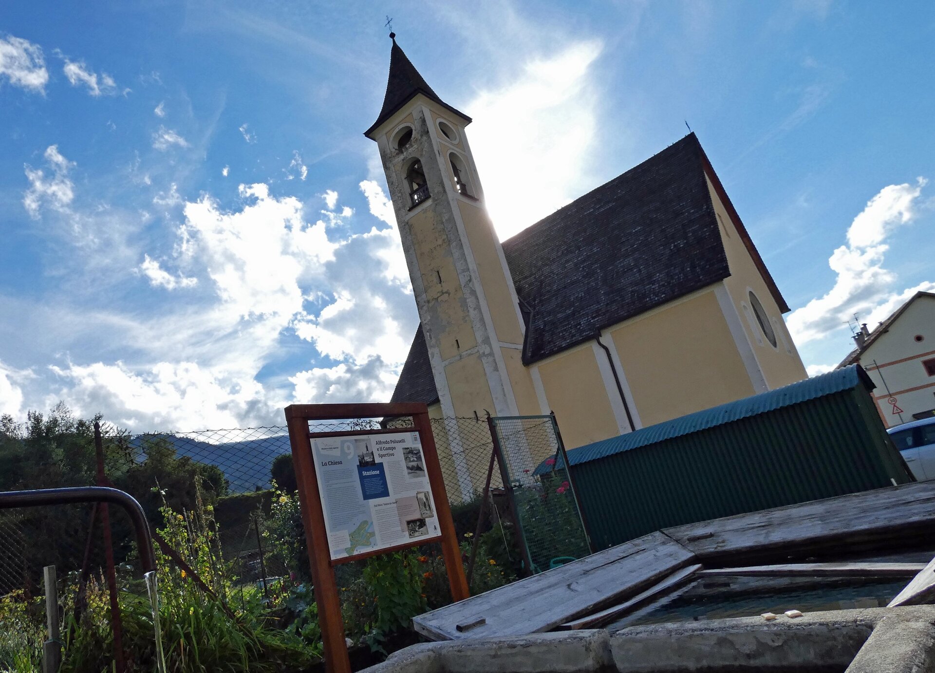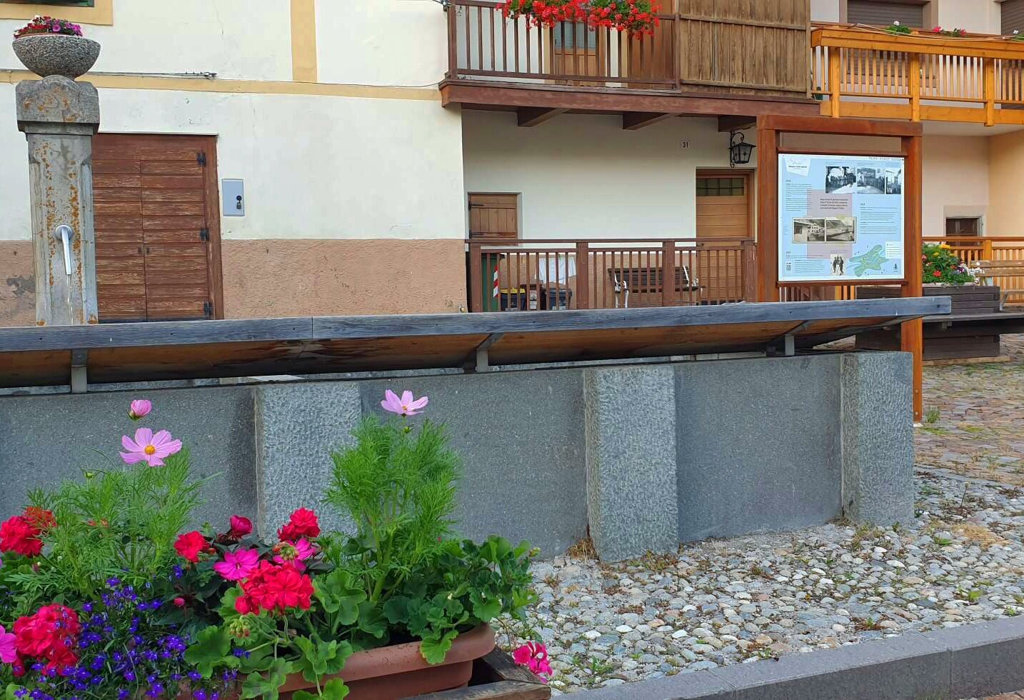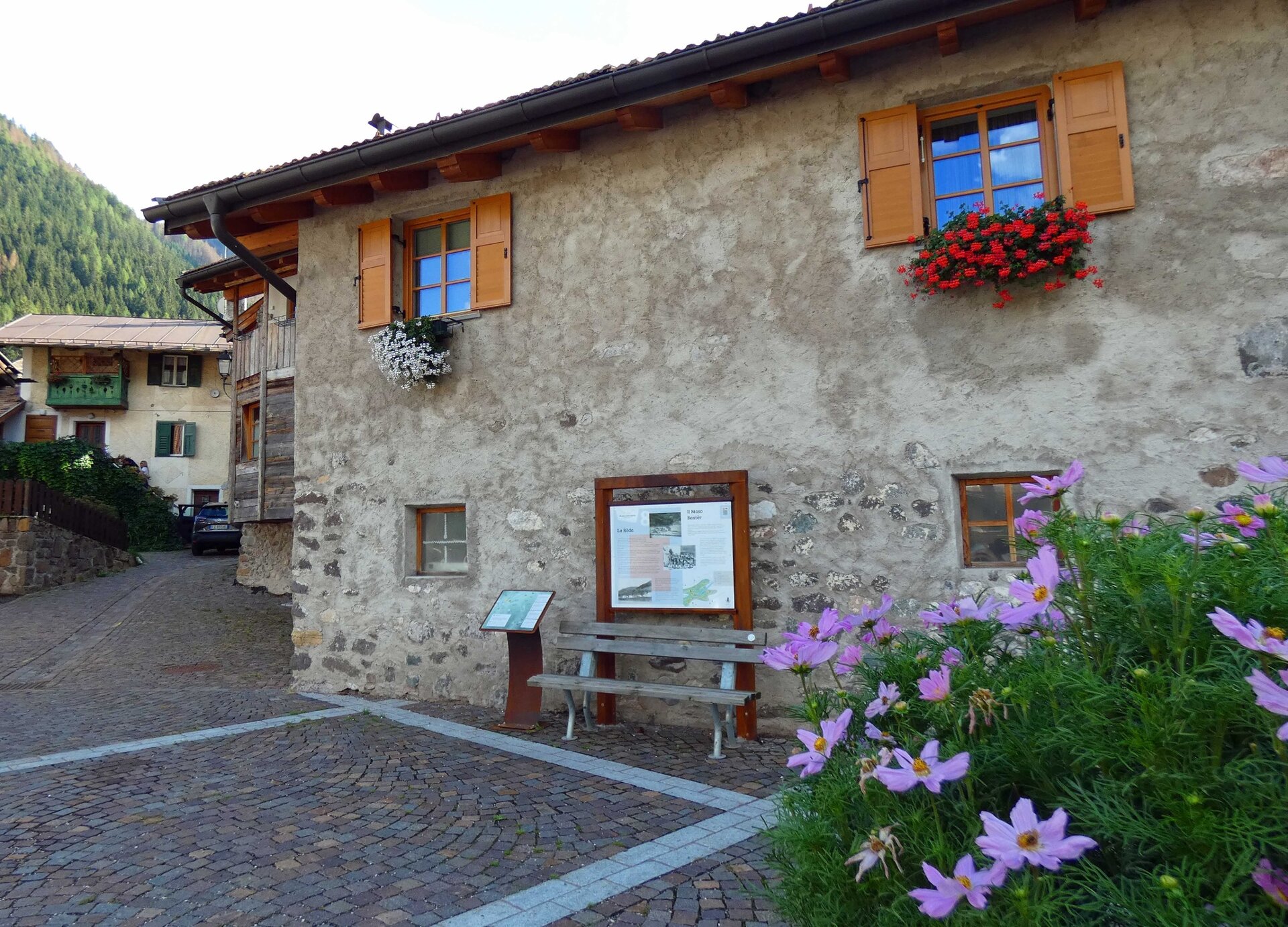 Starting from Piazza Italia, there is a circular route that allows you to explore the village of Ziano di Fiemme and its hamlets. Leaving the church behind, you head towards Hotel Polo and take Via Coronella, along which the first panels are visible. Next, you stroll through the narrow streets of the hamlet of Zanon, then descend towards the main street. With a short detour on the route, you reach Villa Flora and its peaceful garden, then cross the road and head towards the hamlet of Roda. Here, next to the charming little church of Sant’Anna, you take the path through the meadows that leads to the upper hamlet of Bosin. Returning to the paved road, you descend along the street of the same name until you reach the cycle path, which ensures the connection with the hamlet of Zanolin. Walking through characteristic alleys, you finally return to the square of Ziano.