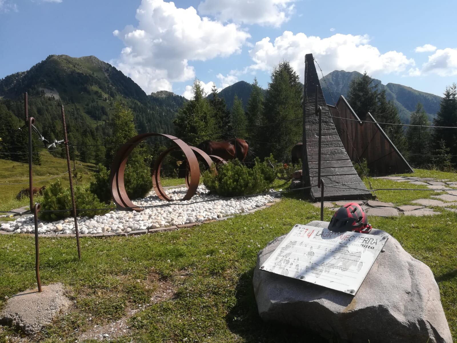 Near Pradi de la Fior, the route passes by the monument to the fallen of the Great War, which recalls the strategic importance the mountains held during the great conflict.