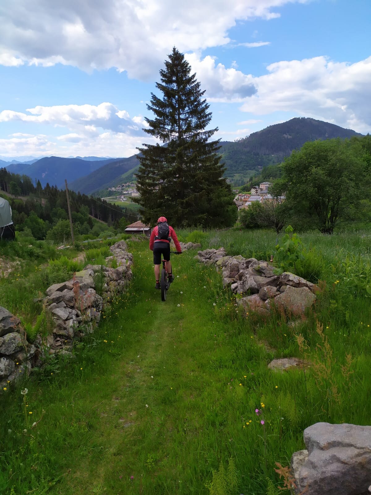 This spectacular route mainly follows forest roads but also includes technical stretches on trails. Its charm is enhanced by the woods and pristine pastures of the western Lagorai range, as well as the opportunity to enjoy pleasant stops at Malga Vernera.