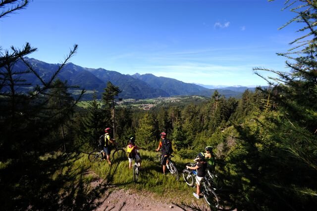 Along all routes, always pay attention to other people and vehicles coming from both directions. MTB routes are not for bikers only. After windstorm Vaia in October 2018, forest roads are used also by heavy vehicles to transport wood. When riding on streets, bikers have to respect the traffic code just like drivers.